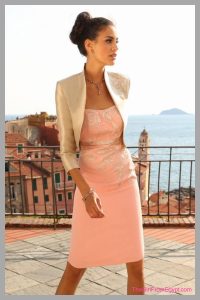 الفستان بسيط جداً؛ لونه فوشيا رقيق و ليه جاكت قصير بكم. زي التايير tailleur بس بفستان بدل الچوپ Jupe.