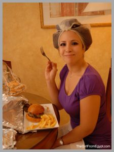 انا كنت جعانة اوي، كنت ممكن اكل اي حاجة من كتر الجوع، فطلبت من الـ makeup artist تستنى و ماتحطليش الروچ غير بعد ما أكل. و طلعت جدعة و سابتني أكل. أصل انا مش حاكُل لحد بالليل اوي. انا عارفة نفسي، مش حاعرف أكل في الفرح خالص، بالفستان الكبير و الطرحة..no way، أخري نئانيئ!